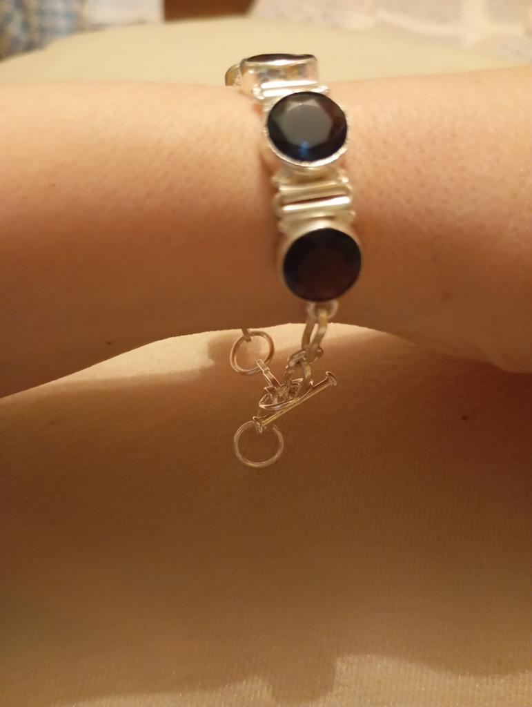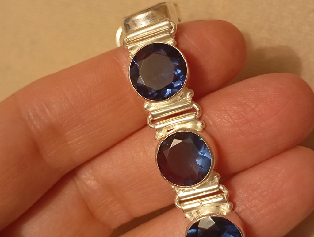 925 sterling silver with London blue topaz, handmade, 9" boho bracelet, gorgeous and delightful, thank you 😉. Recommend!!! 🌷‼️🤙🌷‼️🤙🌷‼️🤙