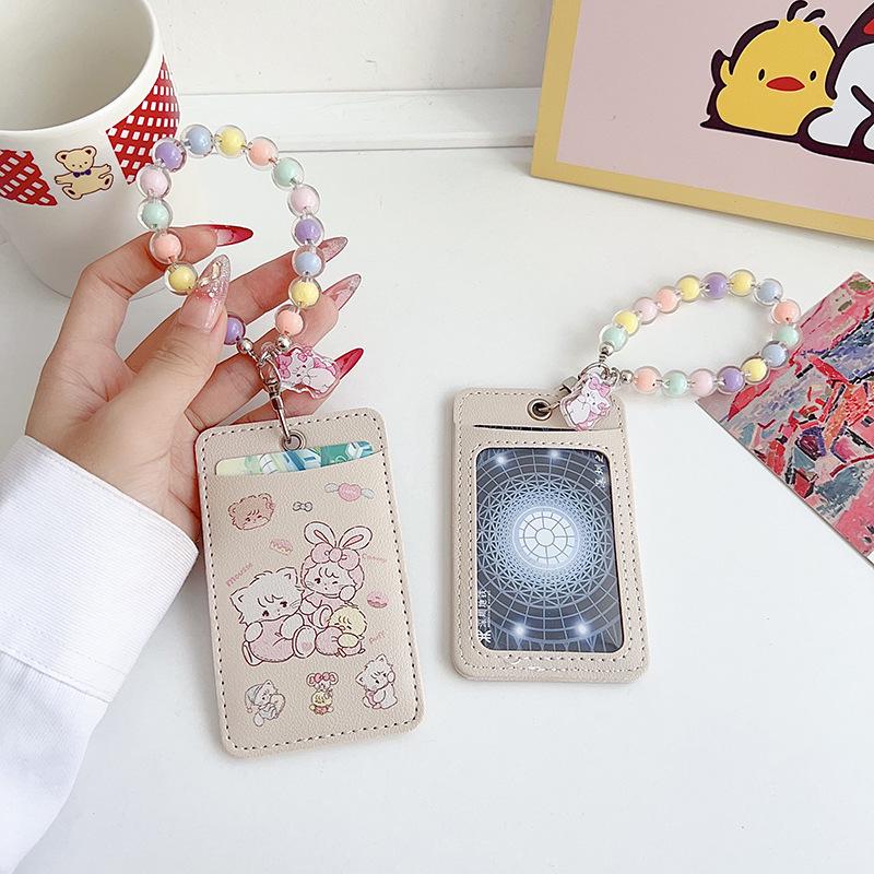 Mikko Cute Japan Cartoon Card Holder 2024: Soft Leather Double Slot for Girls' Campus and Meal Cards