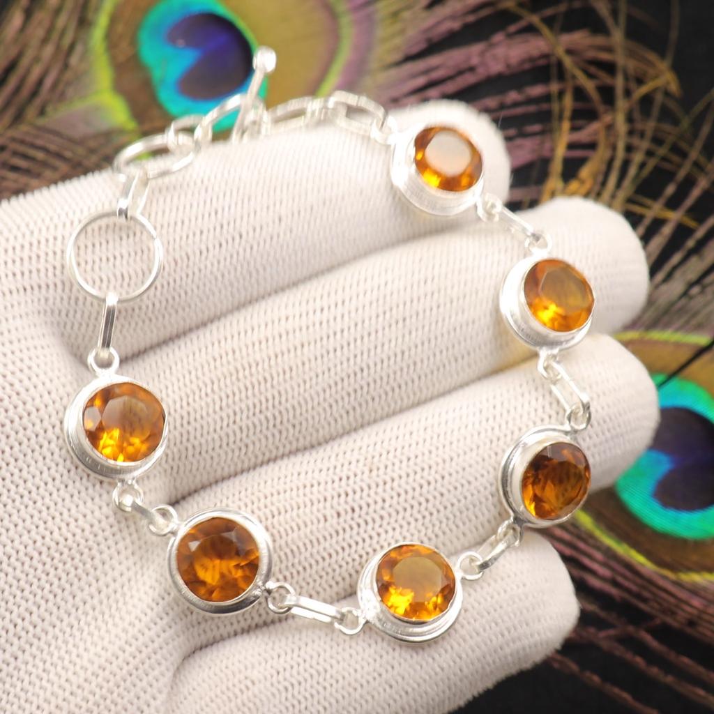 Natural Citrine Gemstone 925 Sterling Silver Jewelry Handmade Bracelet For Her RB-13-6