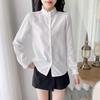 Elevate your wardrobe with this elegant long-sleeve shirt, expertly crafted from high-quality polyester for a comfortable and sleek fit. Featuring a chic stand-up collar and delicate ruffled detailing, this shirt adds a touch of sophistication to any ensemble. Its solid pattern makes it a versatile piece, perfect for both professional settings and stylish everyday wear. With its graceful design and timeless appeal, this shirt is an essential addition to any fashion-forward collection.