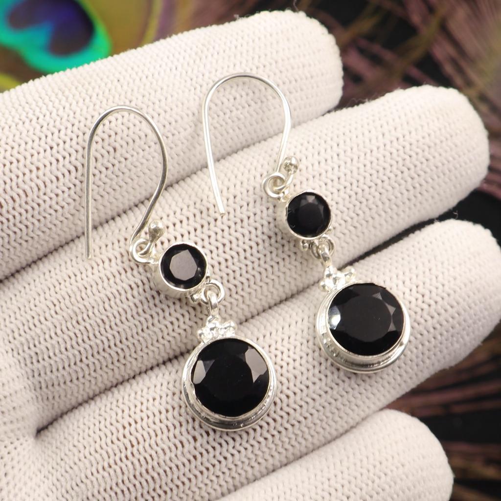Black Onyx Gemstone Earrings 925 Sterling Silver Handmade Jewelry Christmas Gift EE-160-14