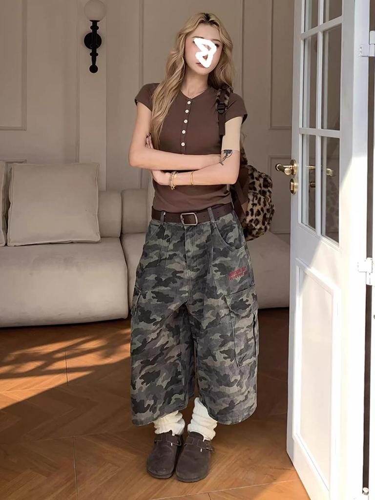 Discover timeless style with these Women's Retro Camouflage Pocket Cargo Wide-Leg Cropped Jeans, designed for a slimming and comfortable summer fit. Made from high-quality cotton, these jeans offer a loose, floor-length silhouette that pairs perfectly with any casual outfit. The high waistline enhances your figure, while the functional camouflage pocket design adds a touch of vintage flair. Ideal for those who appreciate both comfort and fashion, these jeans will become a staple in your wardrobe.