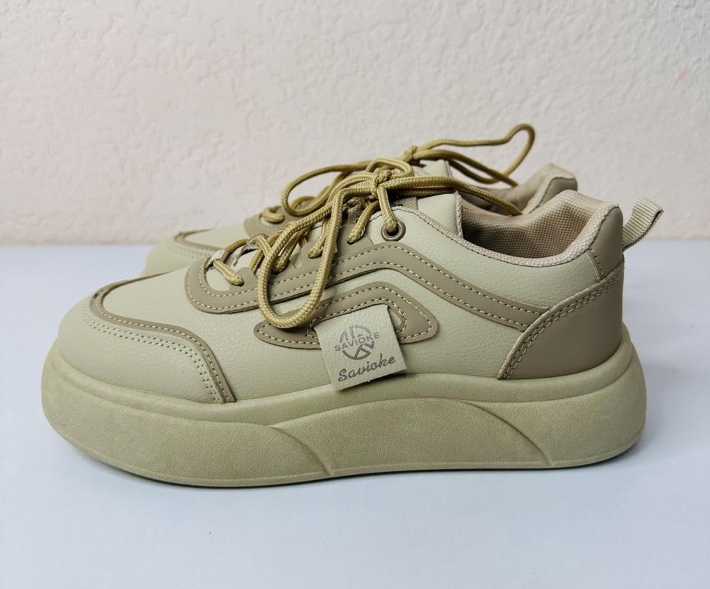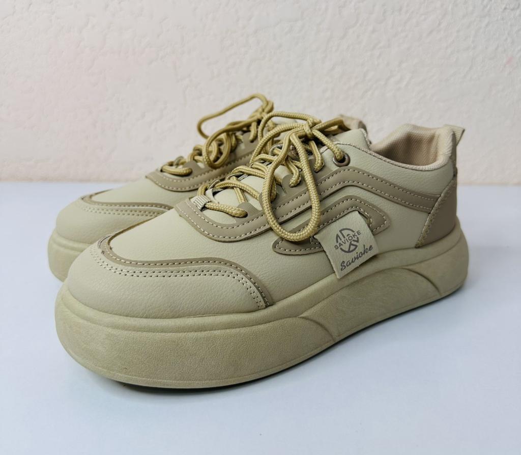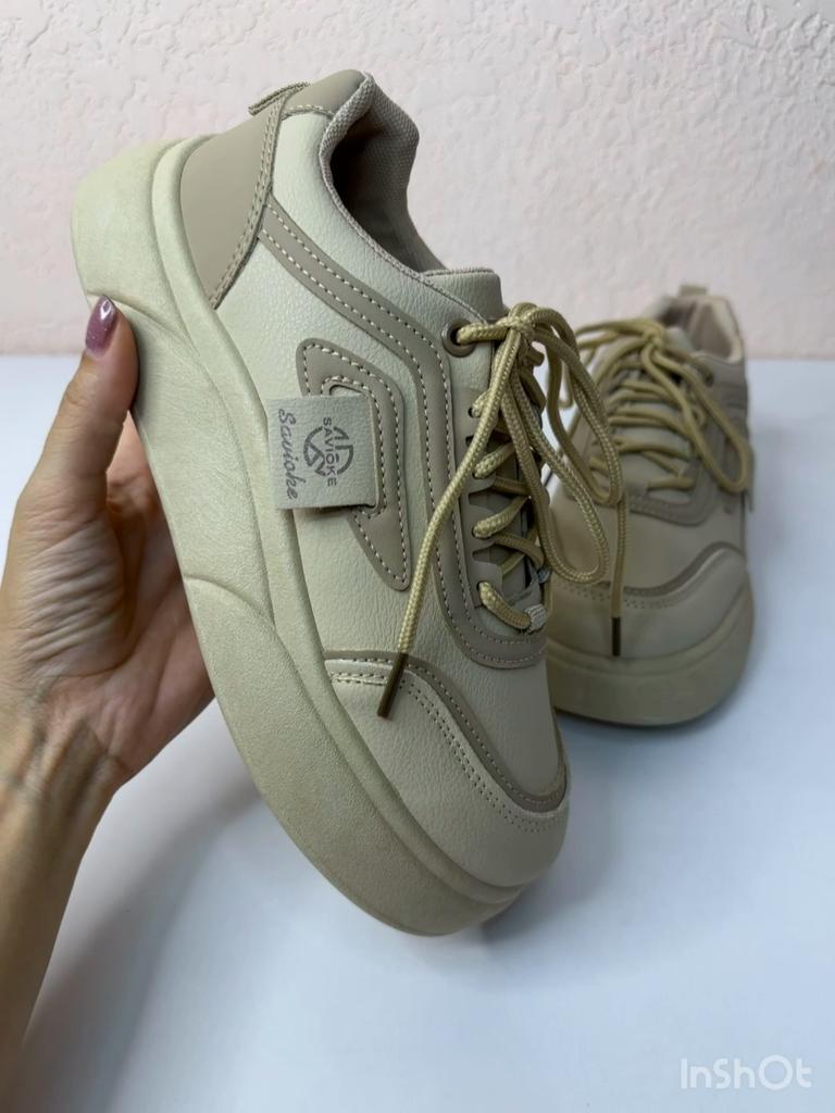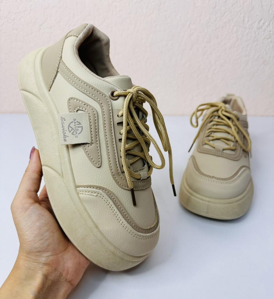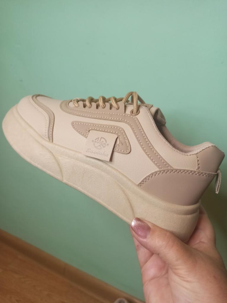 Women's sneakers on a thick sole — style and comfort every day 📍Size 38 for a foot length of 24 cm fits just right 👟 Modern sneakers in a versatile design that will suit both sports and everyday looks. 🌬 Breathable material ensures comfort even in hot weather. 💪 The sturdy and thick sole provides comfort while walking and visually makes the legs slimmer.. ✨ The stylish 'khaki' shade easily matches any item in the wardrobe — from jeans to dresses. 🔥 An excellent choice for walks, study, work, or active recreation.