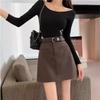 Elevate your autumn and winter wardrobe with this high-waisted A-line mini skirt. Crafted from quality polyurethane, it offers a sleek and solid pattern perfect for a casual style. Designed to be slimming and tummy-covering, this bodycon skirt flatters your silhouette while providing comfort and ease of movement. Ideal for pairing with your favorite sweaters and boots, it's a versatile addition to any stylish ensemble.