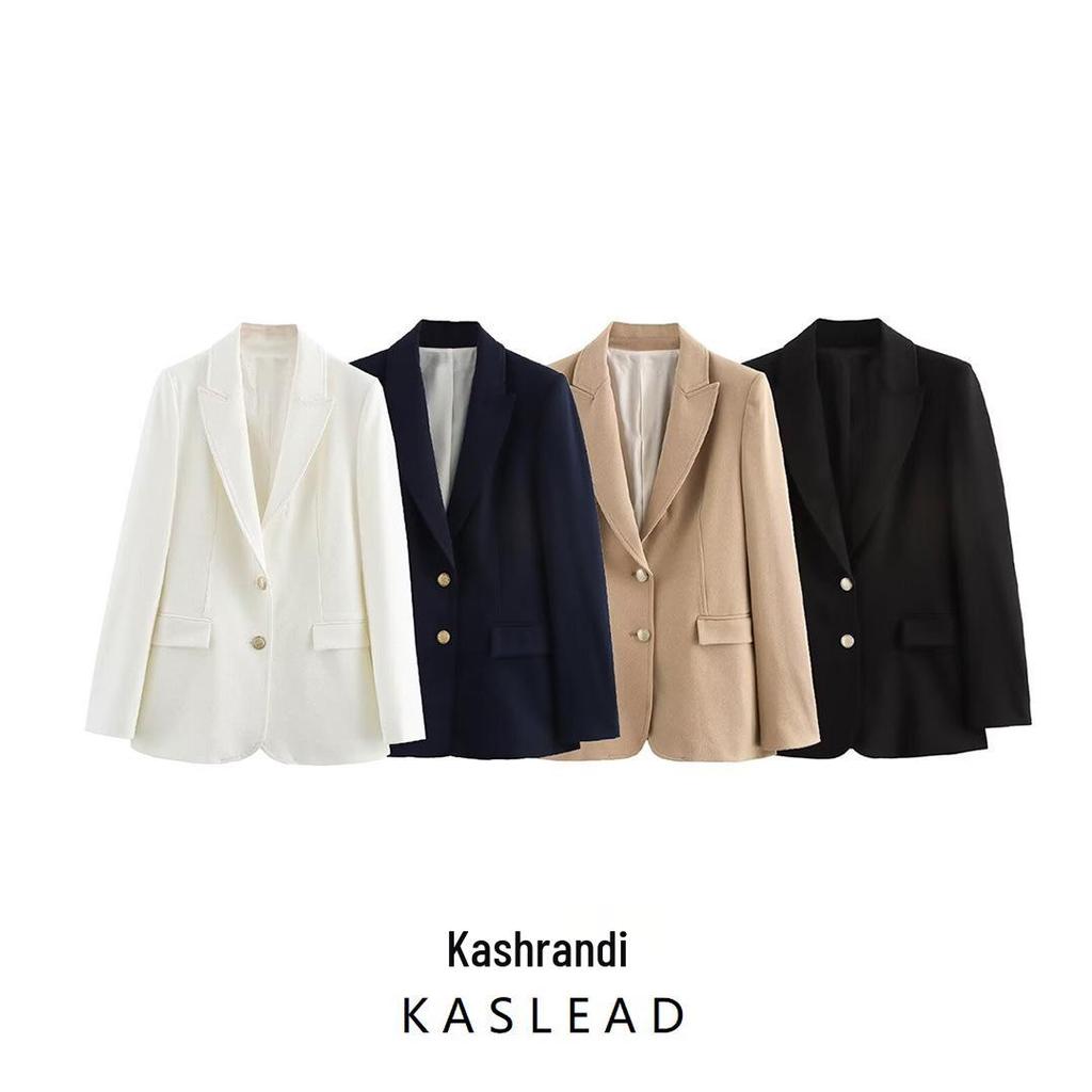2024 Autumn Women's European & American Style Slim Fit Suit Jacket with Metal Buckle