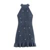 2024 Autumn Women's European & American Style Beaded Faux Fur Halter Neck Dress