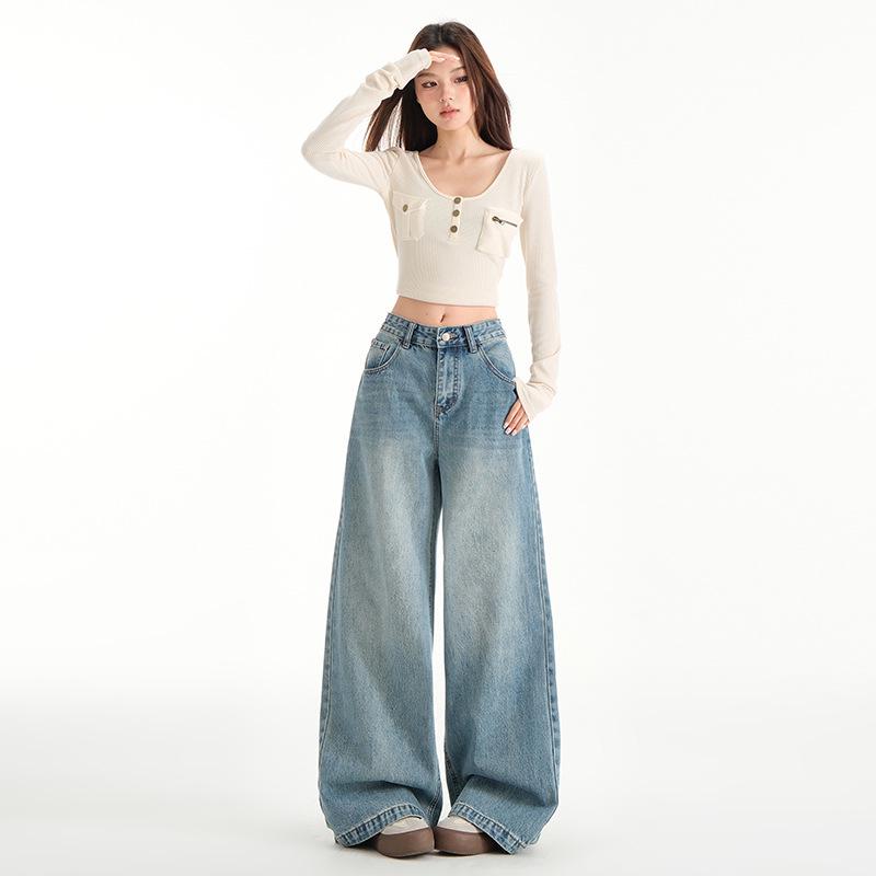 Discover the perfect blend of retro charm and modern style with these women's high-waist wide-leg jeans. Crafted from high-quality denim, these jeans offer both durability and comfort. Featuring a high waistline, they provide a flattering fit that accentuates your curves while offering a vintage-inspired look. The wide-leg design adds an element of sophistication and ease, making these jeans perfect for any casual or sportive occasion.