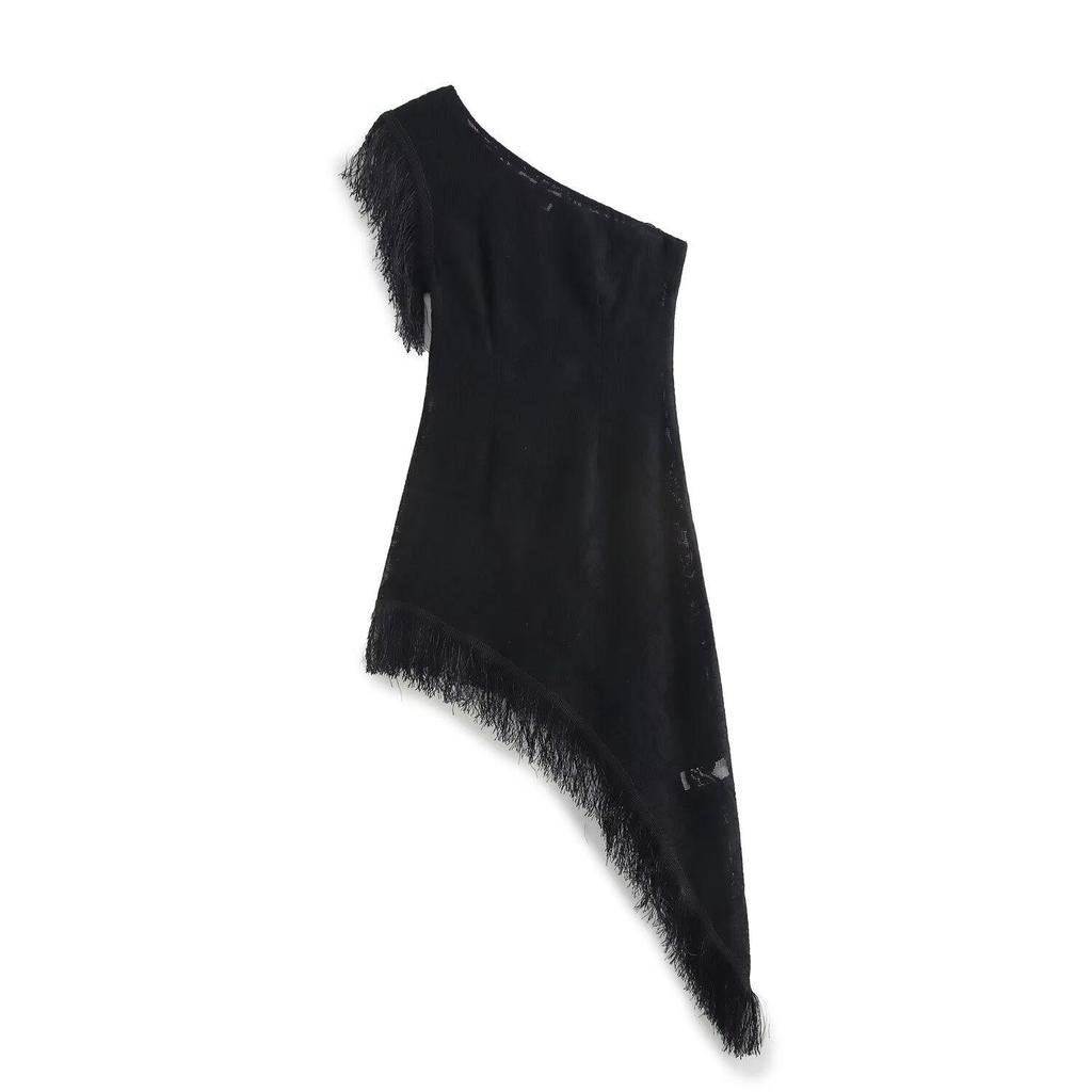Discover the essence of contemporary elegance with this one-shoulder tassel dress, designed to capture the spirit of 2025's spring fashion. Crafted entirely from high-quality polyester, this dress offers a sleek and sophisticated look. Its irregular hem and sexy, modern design make it a standout piece for any occasion. Perfect for those looking to infuse their wardrobe with a touch of European-American style, this dress is both chic and versatile, making it an ideal choice for fashion-forward women.