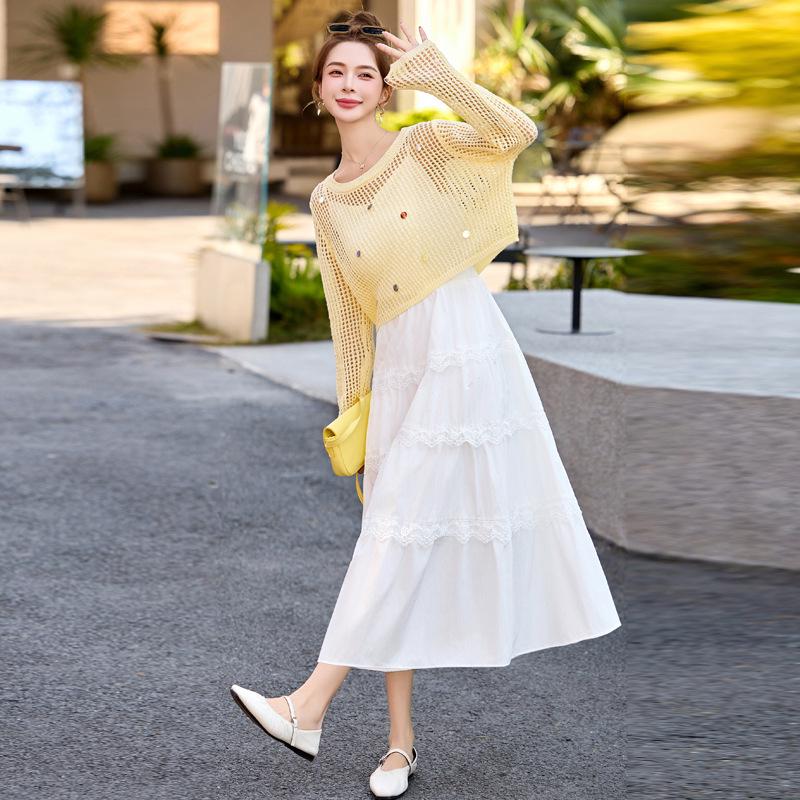 Discover a fresh summer look with this elegant two-piece dress set designed for women who value style and comfort. Crafted from lightweight polyester, this set features a sunscreen spaghetti strap design perfect for those sunny days. The petite slimming fit enhances your silhouette, making it ideal for any casual outing or garden party. Stay cool and chic in this versatile white dress set that combines fashion with functionality.
