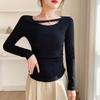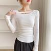 This Women's Slim-Fit Long-Sleeve Pleated Top from the Fall/Winter 2024 Collection offers a chic and comfortable style. Crafted entirely from soft, breathable cotton, this top is perfect for cooler seasons. Featuring a sophisticated round neckline and elegant pleated detailing, it effortlessly combines style and comfort, making it a versatile addition to any wardrobe. Ideal for both casual and dressier occasions, this top is designed to enhance your silhouette with its flattering slim-fit cut.