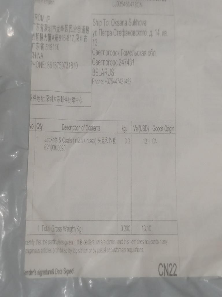 size: 90, Length: 37cm, Sleeve: 27cm, Chest: 27cm.