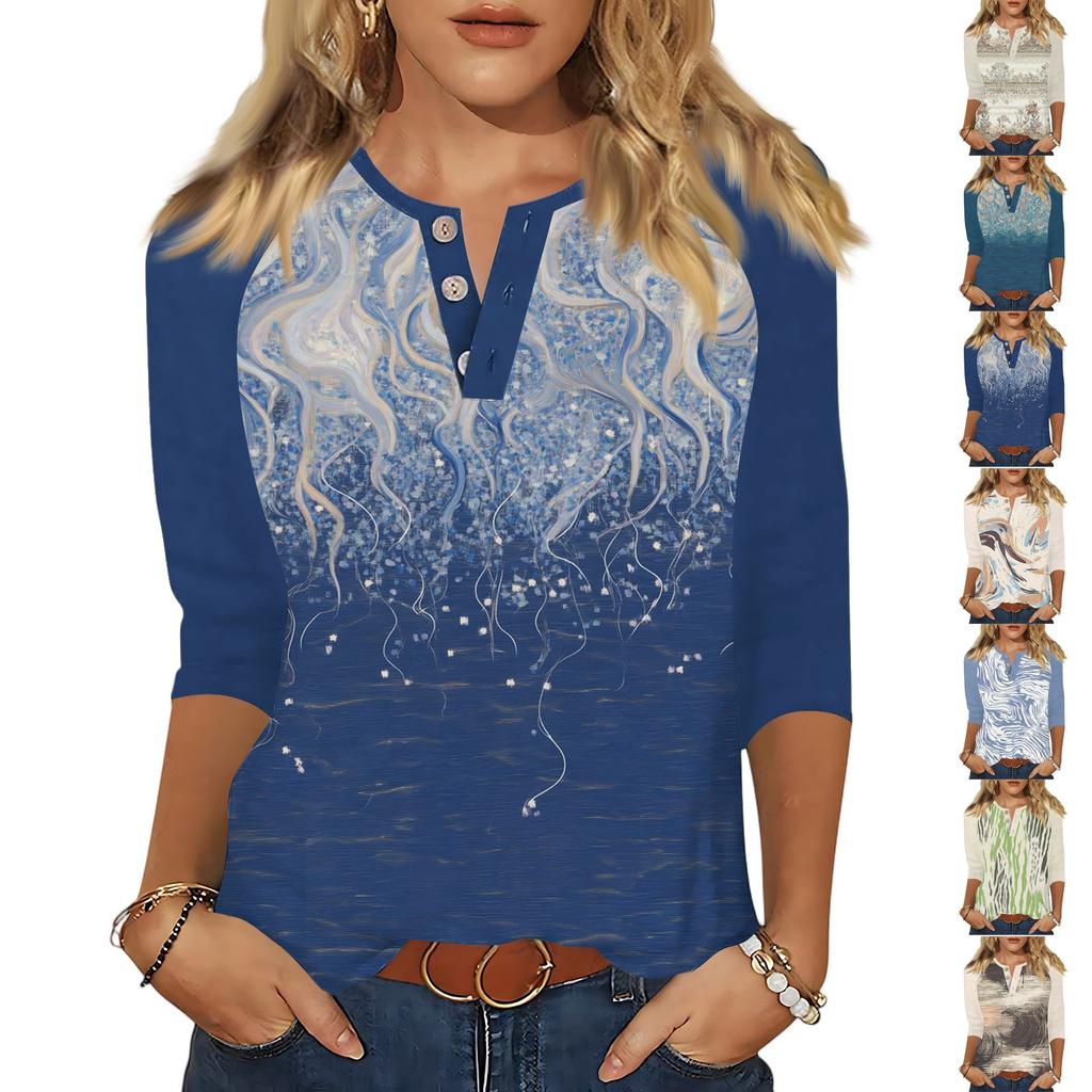Women's T Shirt Print Button 3/4 Sleeve Daily Weekend Fashion Basic V- Neck Regular Top