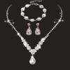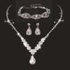 Three-Piece Rhinestone Zircon Bridal Jewelry Set: Tear Drop Necklace, Earrings & Bracelet
