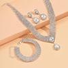 European-American Bridal Jewelry Set: Full Diamond Necklace, Earrings, Bracelet, Ring, Wedding Dress Accessories