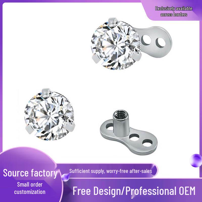 European & American Style Round Zircon Embedded Stainless Steel Body Piercing Nail 316L