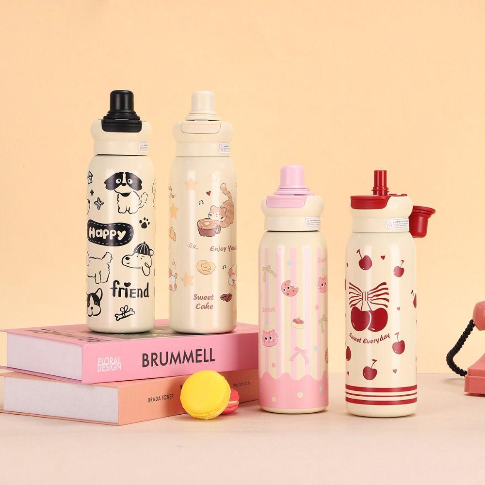 Cute 620ML Vacuum Cup Insulation Or Cooling with Straw Insulated Cup High-Capacity Thermal Water Bottle for Student Children