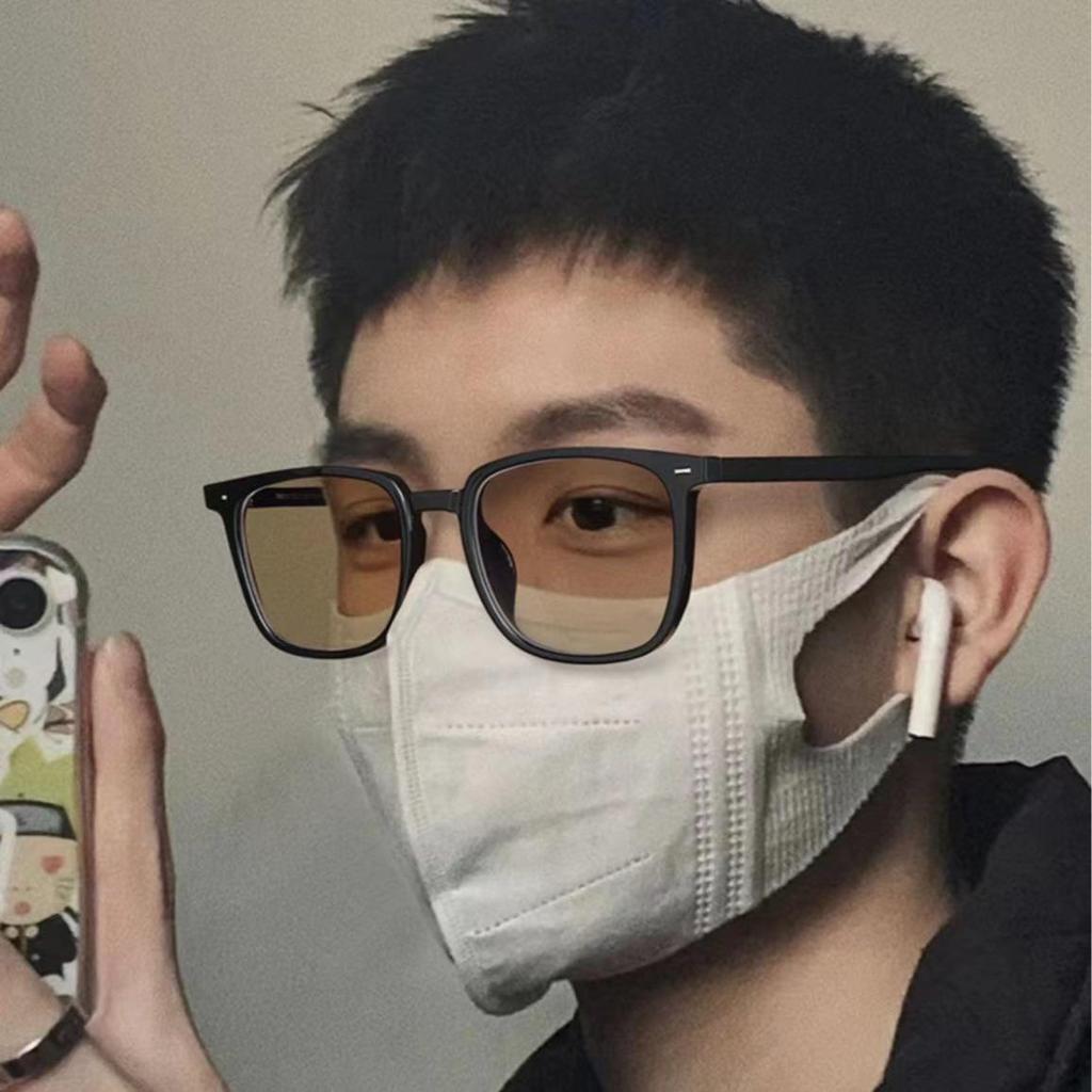 Women's TR90 Color-Changing Myopia Glasses: Large Frame, Versatile Cold Tea Hue, Anti-Blue Light.