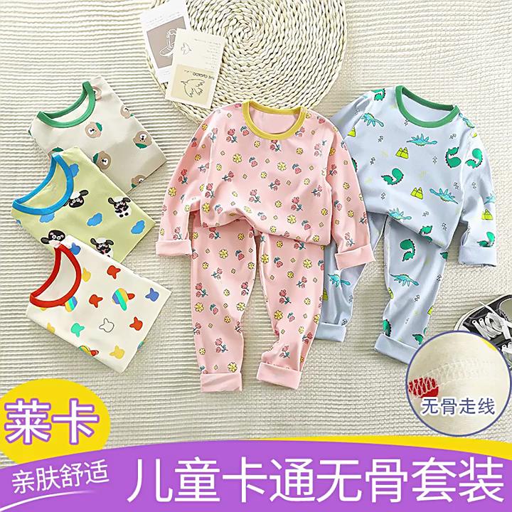 100% Cotton Kids Thermal Underwear Set Long Sleeve Pants Soft Sleepwear Homewear Cartoon Print Comfortable A Class Safety