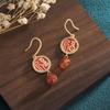 2022 Festive Chinese Cloisonné Fu Chalcedony Agate Earrings