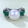 Xiancan 023 S925 Silver 12mm Shell Pearl Ring with Simulated Emerald, Women's European & American Style