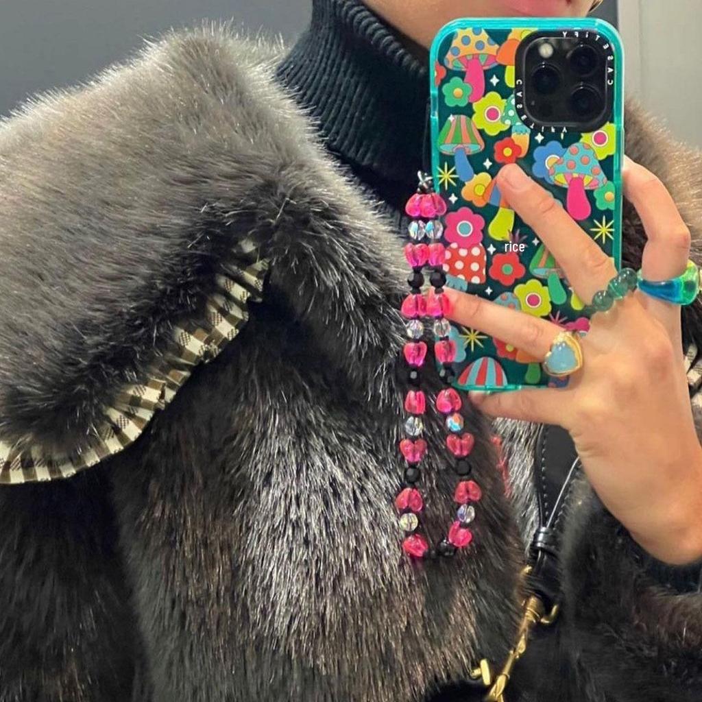 KKBEAD Pink Smiley Face Acrylic Bead Phone Lanyard Rope Pendant
