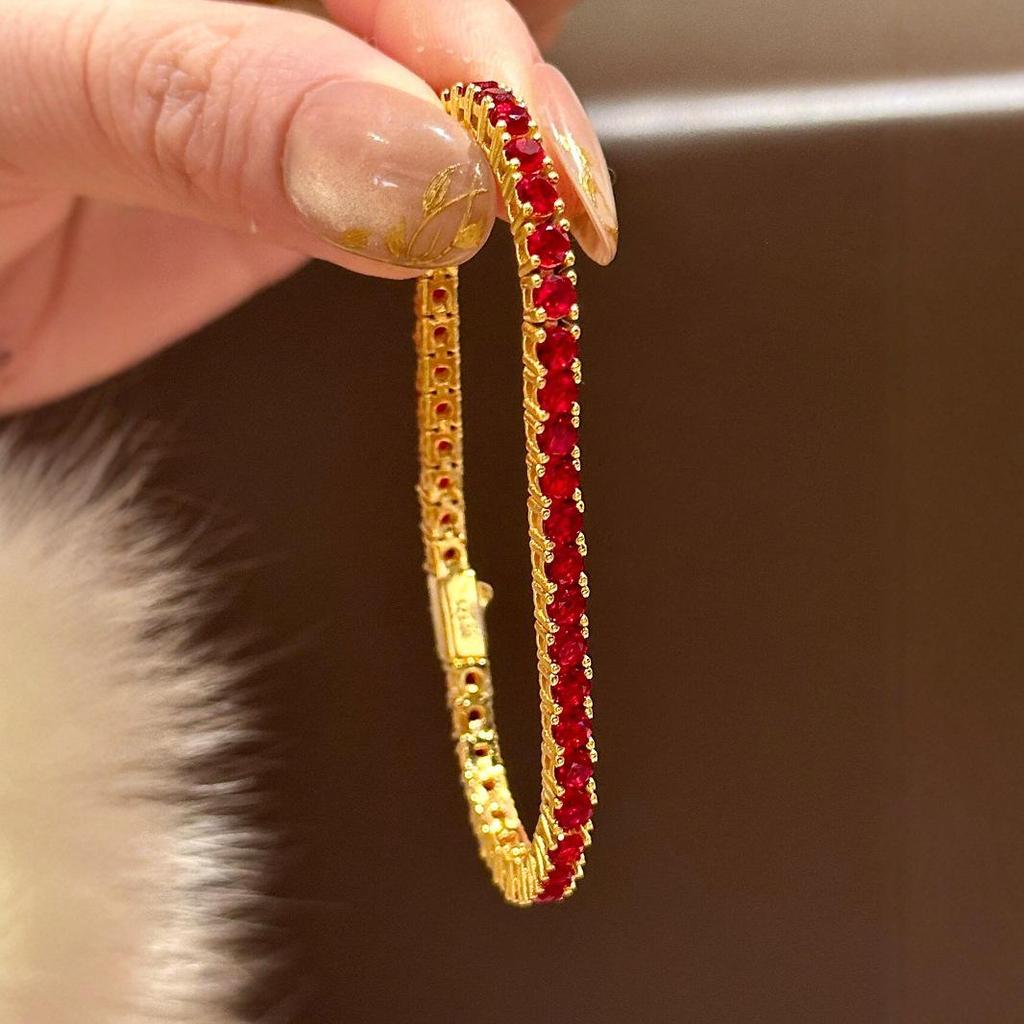 2025 Luxurious Red Diamond Ruby Bracelet for Women: Elegant Chinese Style Bangle
