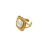 European & American Style Stainless Steel Open Ring with Square Texture & Imitation Pearl