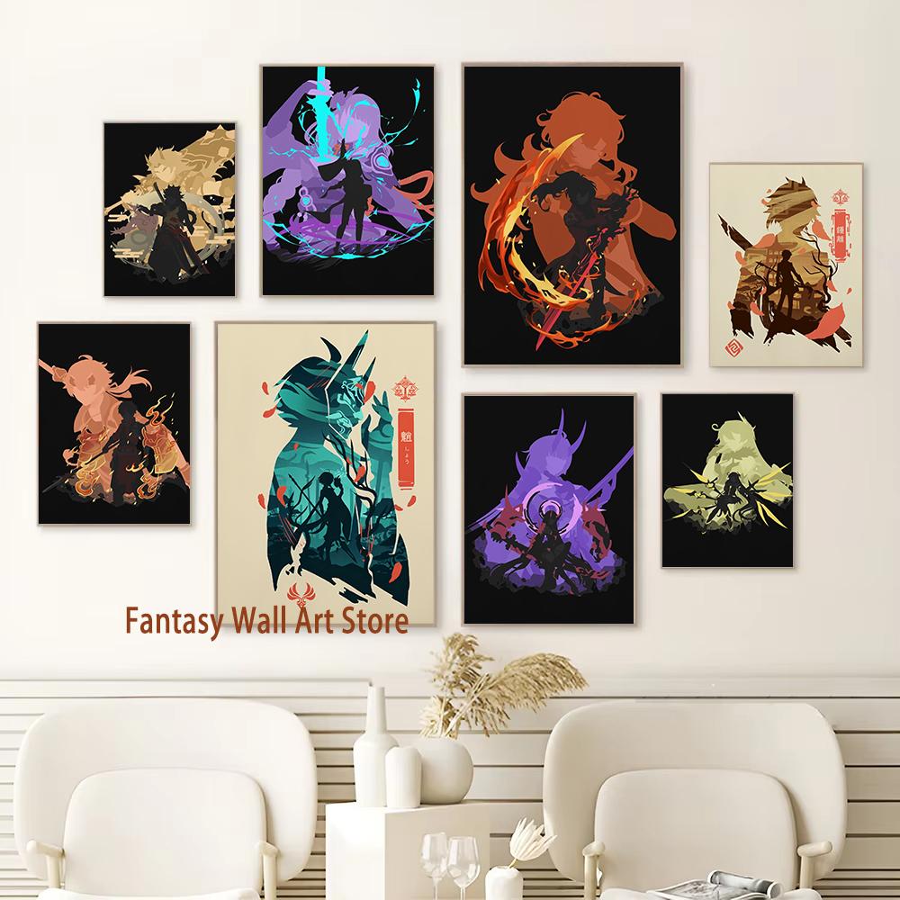Genshin Impact Poster Game Print Wall Art Gift for Gamers Genshin Impact Characters Aesthetic Decor Canvas Painting Gaming Print