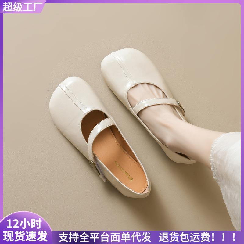 Round Head Soft Sole Single Shoes Women's Spring New Flat Bottom One Word with Mary Jane Shoes Women