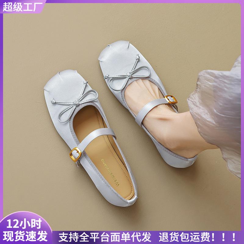 Round Head Ballet Shoes for Women with Light Mouth Bow Single Shoes for Women