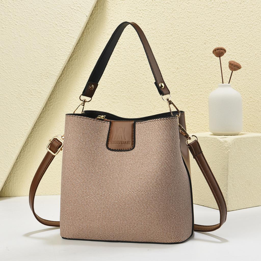 Bucket Bag New Solid Color Splicing Handbag Fashion Shoulder Messenger Bag Women's Bag