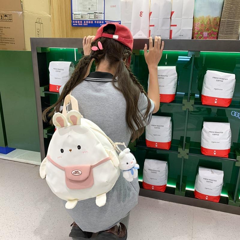 Cute Little Bunny Girl Backpack Bag Junior High School Student College Student Class Schoolbag Large Capacity Oblique Span Canvas Bag