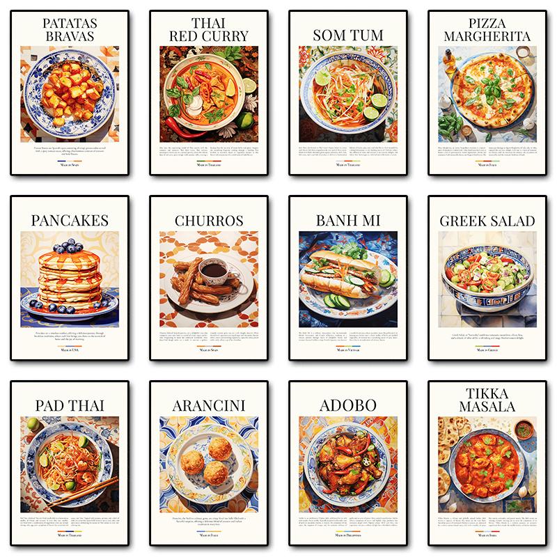 Kitchen Food Poster Patatas Bravas Churros Pizza Pancakes Canvas Painting Prints Wall Picture for Bar Dining Room Home Decor