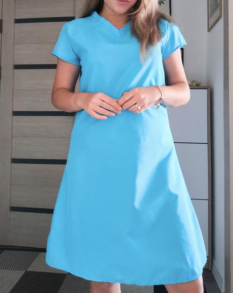 Fashion Casual Short Sleeve V-Neck Summer Dress Women Elegant Plus Size Basic Solid Color A-line Party Dress Female Loose Women's Clothing