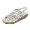 Spring New Bohemian Sandals Round Head Small Wedge Heel Sandals Women's Rhinestones Large Size Women's Sandals