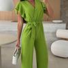 A Large Number of Spot New V-neck Lace-up Summer One-piece Trousers Female Elegant Commuter All-match 8066