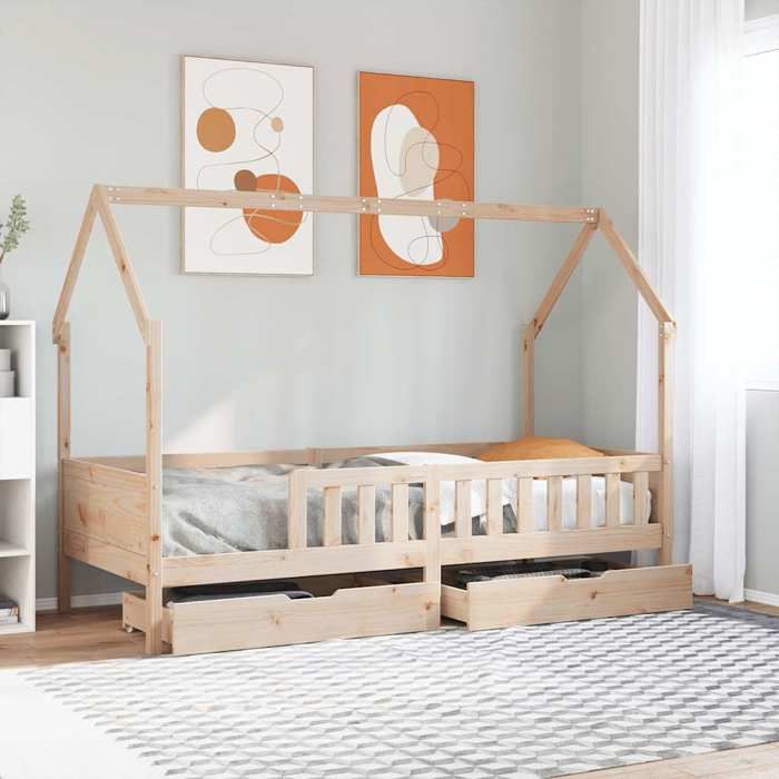 VidaXL Kid's Bed Frames with Drawers 90x200 Cm Solid Pine Wood, Bed for Kid, Single Bed for Kid, House Bed 3302032
