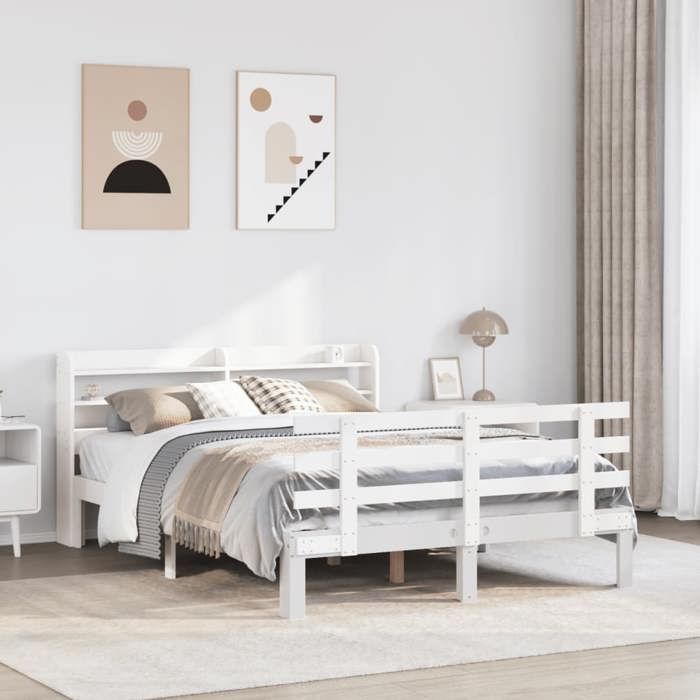 VidaXL Bed Frame with Headboard White 150x200 Cm Solid Pine Wood, Bed, Solid Wood Bed Frame, Bedroom Furniture At 3306856