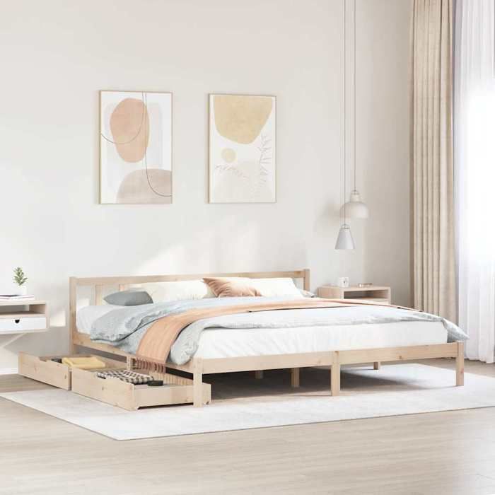 VidaXL Bed Frame with Drawers 200x200 Cm Solid Pine Wood, Slatted Base, Double Bed Frame, Solid Wood Bed Frame, 3301483