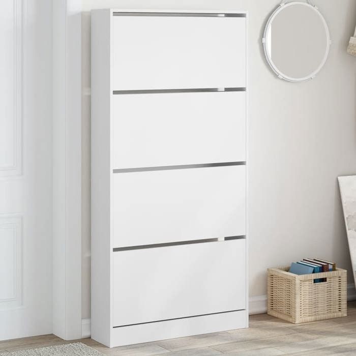 VidaXL Shoe Cabinet 4 Drop-Down Drawers White 80x21x163.5 Cm 3214364