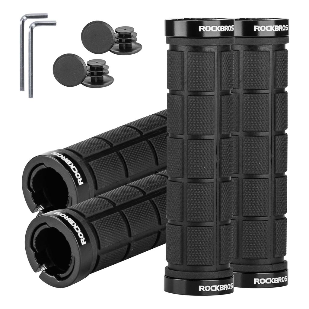 ROCKBROS Bicycle Set of Rubber Handlebar Grips with Double Locking Inner Shock Comfortable Easy Includes Hex Suitable for Cross Mountain and Folding