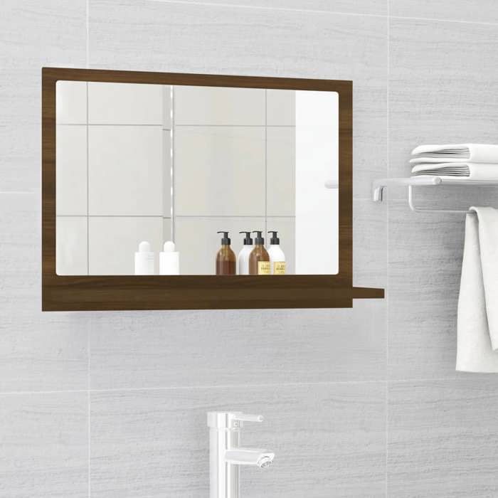 VidaXL Wall Mounted Bathroom Mirror Vanity Mirror Makeup Mirror Bathroom Interior Brown Oak 815638