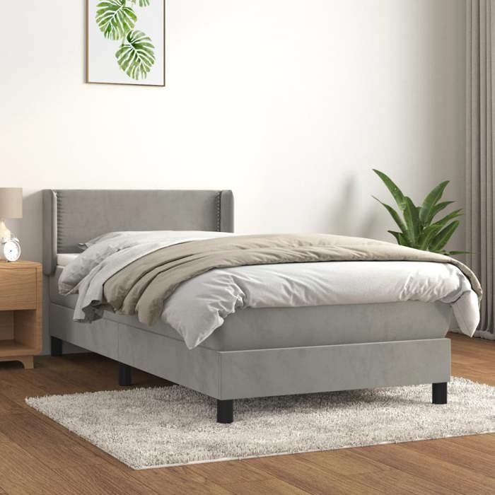 3130871 vidaXL Divan Bed and Mattress Light Grey 90x190 Cm Velvet
