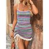 Summer New Women'S Beach Vacation Dress With Suspender Straps Colorful Stripes Knitted Drawstring Backless Strap Dress