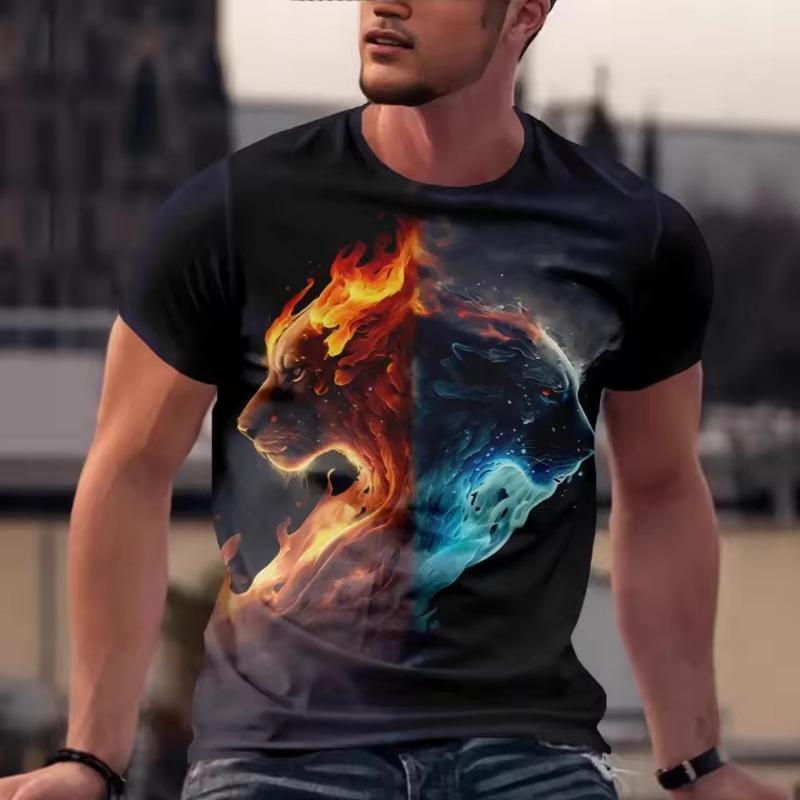 Street Trend Funny Men's Clothing Casual T-shirt 3D Printing Creative Graphic Short Sleeved Loose Round Neck Top Men