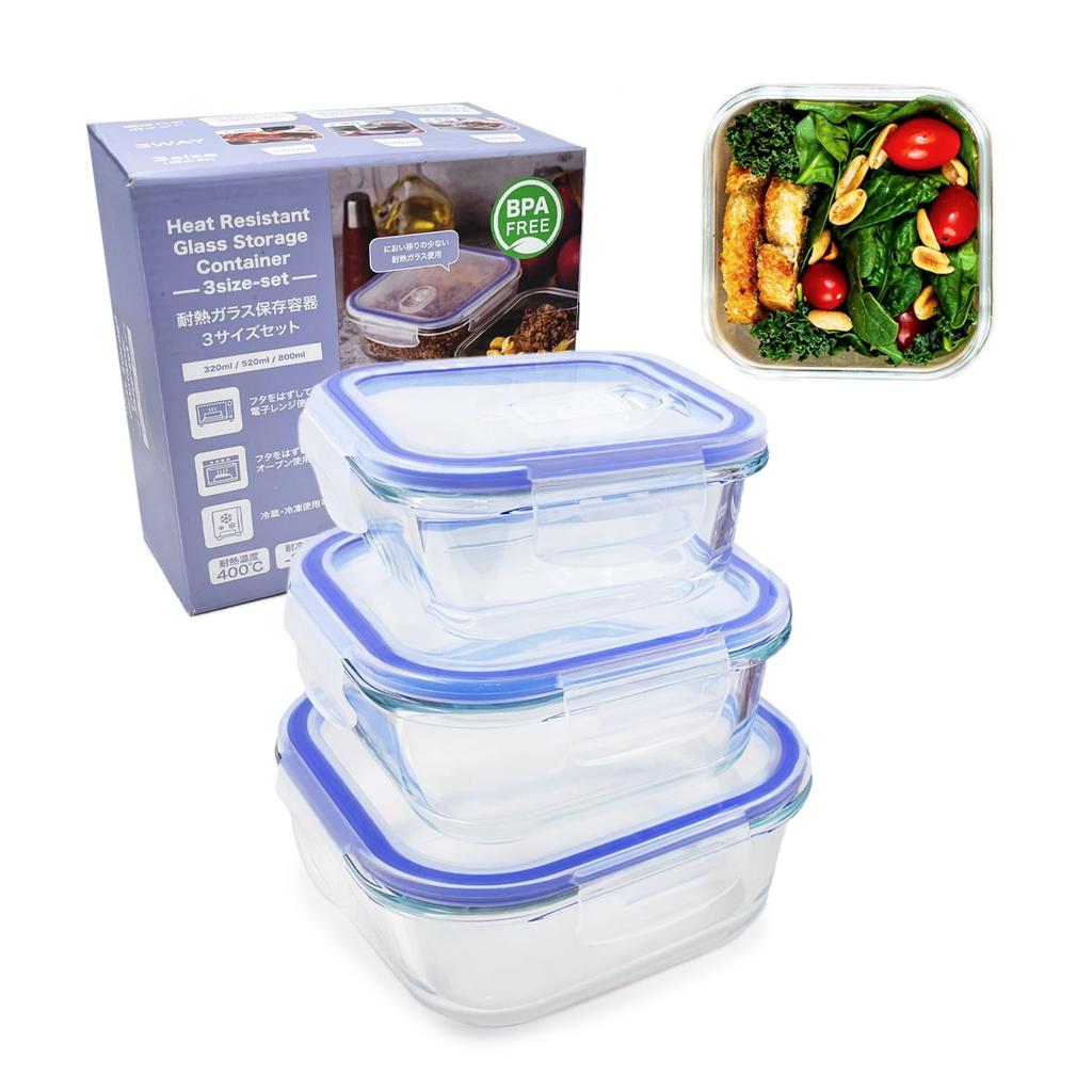 CLEAN HOUSE with and Set of Tupperware Storage Containers 320ml X 520ml X 800ml X Heat-Resistant Containers, Microwave-Safe, Lids, Glass, Large,