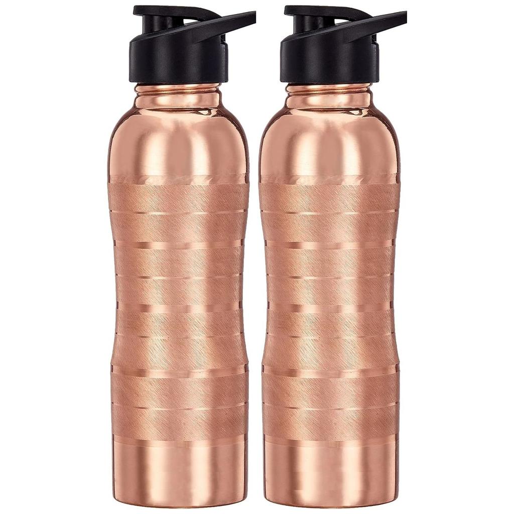 Copper Water Bottle with Fliptop |100% Pure Copper Water BottleICopper Bottle for Home, School & Office | Lining Finish | 950 Ml | Set of 2