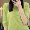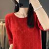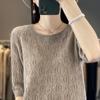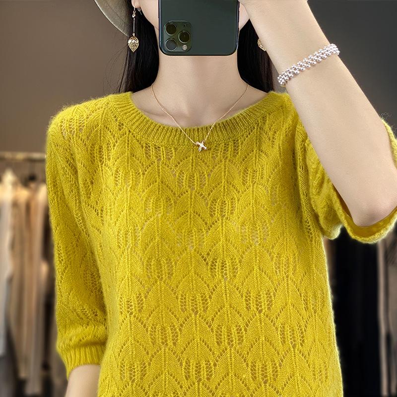 Hollow Thin Knitted Base Spring and Summer New Loose Embroidered Fashionable Versatile Round Neck Five-point Sleeve Top