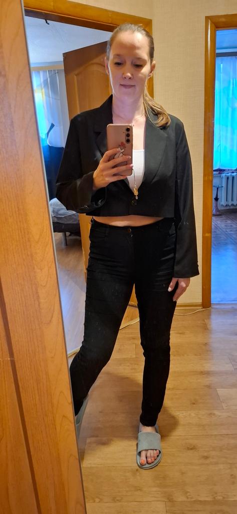 Black Cropped Blazers Woman Trend All-match Notched Collar Crop Jacket Women Korean Chic Single Button Suit Coat