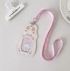 Cartoon Puppy Cat Leather 3inch Cards Cover Neck Strap Lanyard Campus Card Holder For Student
